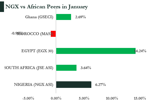 This performance was not an isolated development but broadly aligned with trends across global and Pan-African equity markets. Notably, the NGX outperformed several African peers, including the BRVM and the Moroccan exchange, which recorded more muted starts to the year.